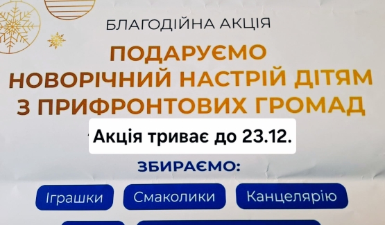 Благодійна акція "Подаруємо новорічний настрій для дітей з прифронтових громад"