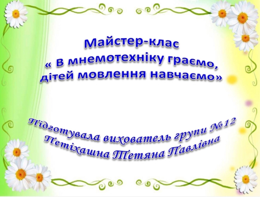 Петіхашна Тетяна Павлівна провела майстер-клас на тему «В мнемотехніку граємо, дітей мовлення навчаємо».